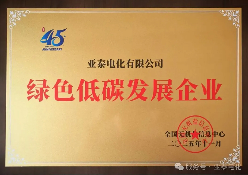 在化工行業(yè)向綠色可持續(xù)轉(zhuǎn)型的浪潮中,國家高新技術(shù)企業(yè)——亞泰電化有限公司始終堅(jiān)守創(chuàng)新驅(qū)動(dòng)、低碳發(fā)展的初心,近日再傳捷報(bào):公司在2025年11月7日至9日第45屆無機(jī)酸堿鹽學(xué)術(shù)年會(huì)上被授予“綠色低碳發(fā)展企業(yè)”。